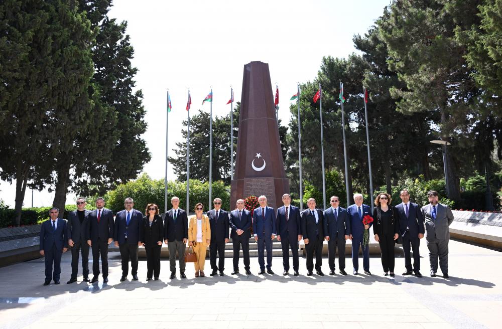 Daha sonra “Türk şəhidliyi” abidəsi ziyarət edilib. Azərbaycanın istiqlaliyyəti uğrunda canlarından keçən, Azərbaycan-Türkiyə qardaşlığının əbədiliyini, sarsılmazlığını əks etdirən bu məzarlıqda uyuyan qəhrəman və fədakar türk qardaşlarımızın xatirəsi anılıb, abidənin önünə əklil qoyulub, gül dəstələri düzülüb.