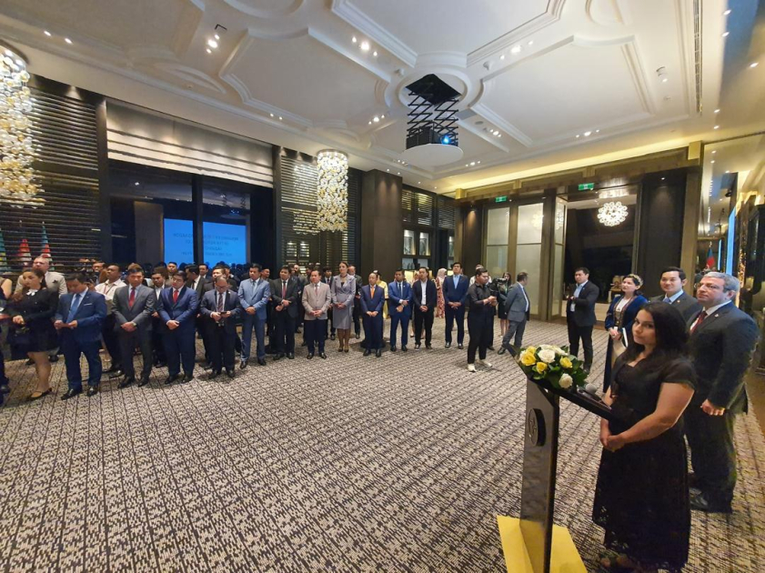 Azərbaycanın Kambocadakı səfirliyindən AZƏRTAC-a bildiriblər ki, tədbir hər üç ölkənin Dövlət himnlərinin canlı ifası ilə başlayıb.