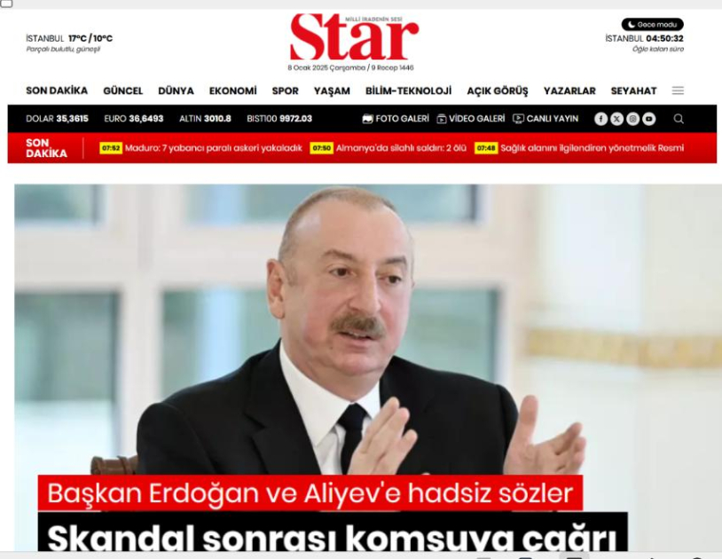 Azərbaycan Prezidenti İlham Əliyevin yerli televiziya kanallarına müsahibəsində səsləndirdiyi fikirlər Türkiyə mediasında geniş işıqlandırılıb.