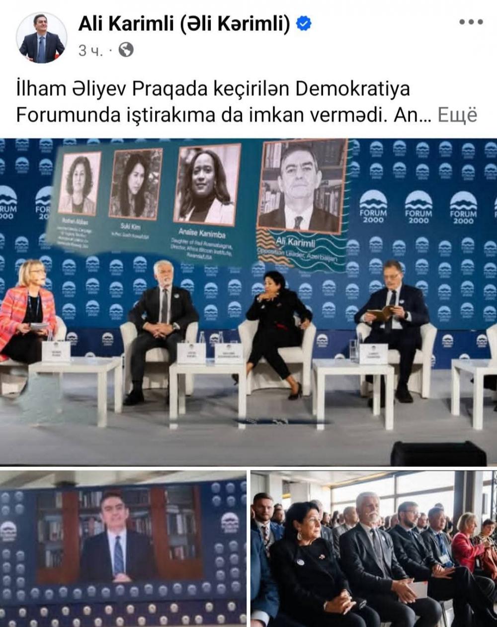 "Bu gün Praqada, Forum 2000 tədbirində Əli Kərimlinin cəmi 5 dəqiqəlik videoçıxışı oldu.