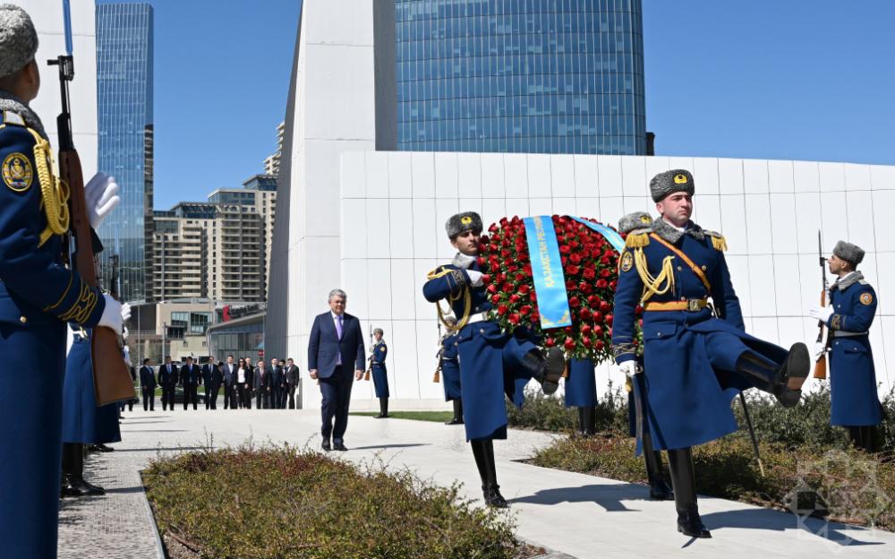 Ölkəmizdə səfərdə olan Qazaxıstan Respublikasının xarici işlər naziri Yermek Koşerbayev və nəqliyyat naziri Nurlan Sauranbayev aprelin 8-də Şəhidlər xiyabanını ziyarət ediblər.