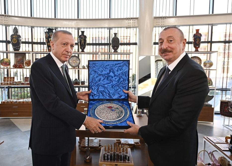 В заключение Президентам Азербайджана и Турции были вручены памятные подарки.