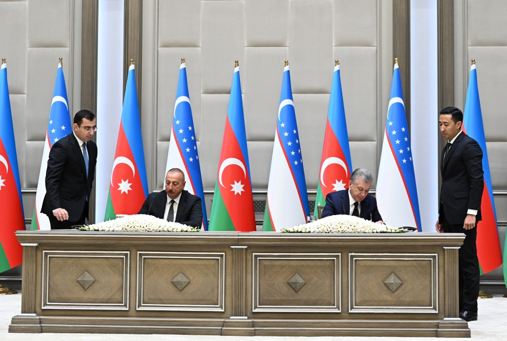 Президенты Азербайджана и Узбекистана выступили с заявлениями для печати