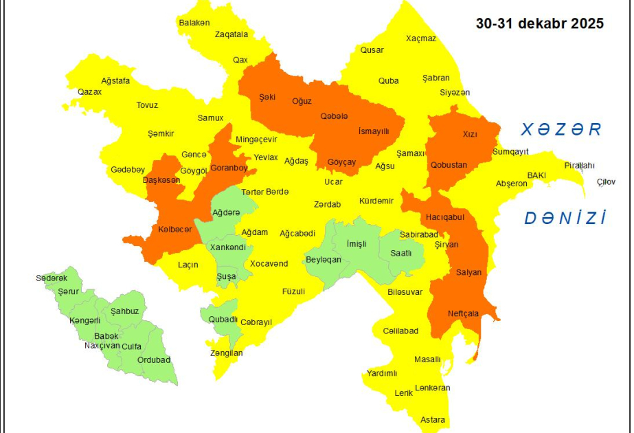 Azərbaycanda gələn ilin ilk gününə olan hava proqnozu açıqlanıb