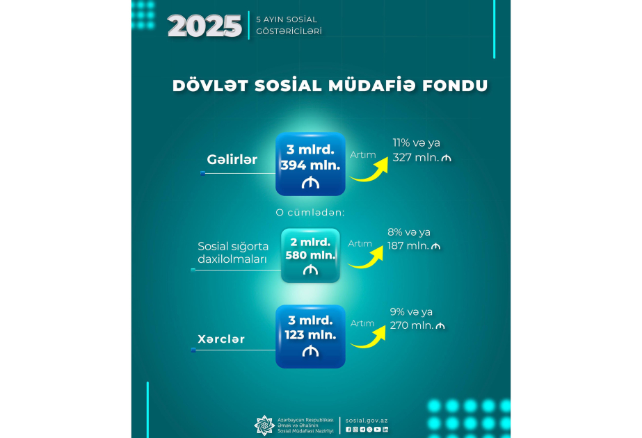 Ötən beş ayda DSMF-nin xərcləri 3 milyard 123 milyon manat olub