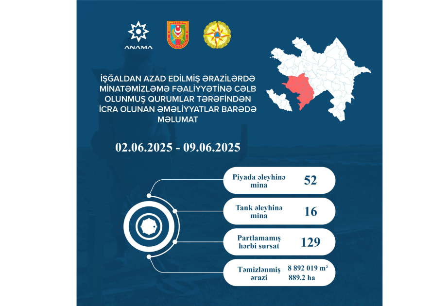 Ötən həftə 68 mina və 129 partlamamış hərbi sursat zərərsizləşdirilib