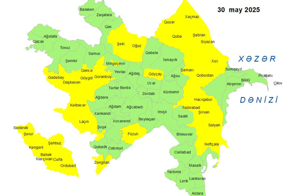 Küləkli hava şəraiti ilə bağlı sarı xəbərdarlıq verilib