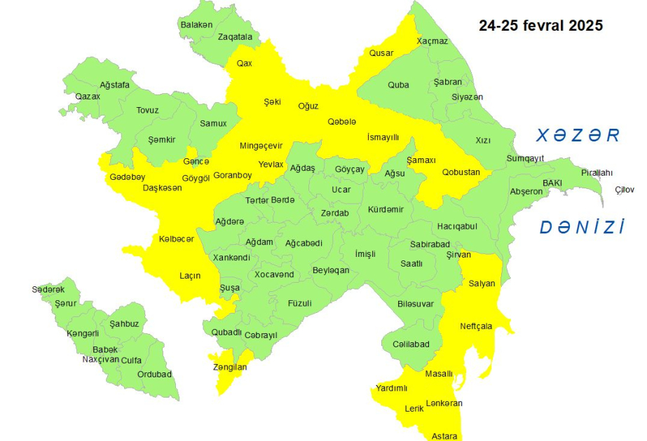 Küləkli hava şəraiti ilə bağlı sarı xəbərdarlıq verilib