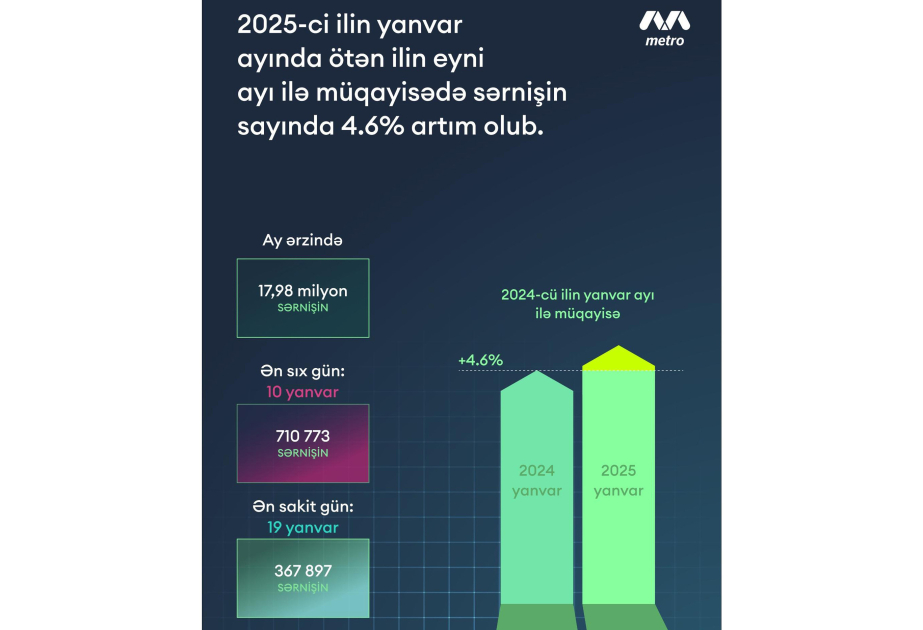 Yanvarda 18 milyona yaxın sərnişin Bakı metrosundan istifadə edib
