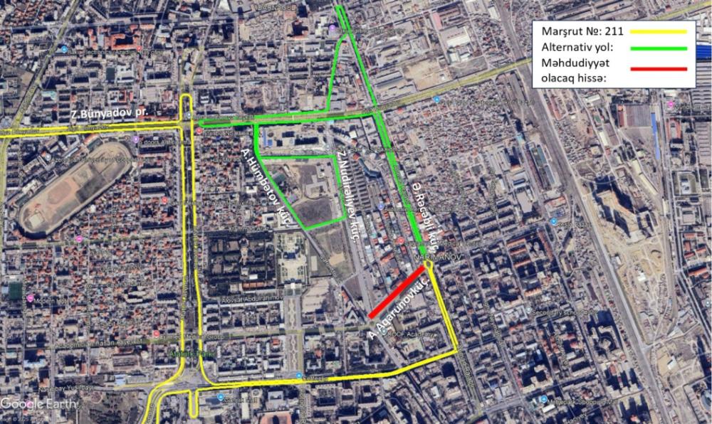 Avtobusların 3 marşrut üzrə hərəkət sxemi müvəqqəti dəyişdirilir