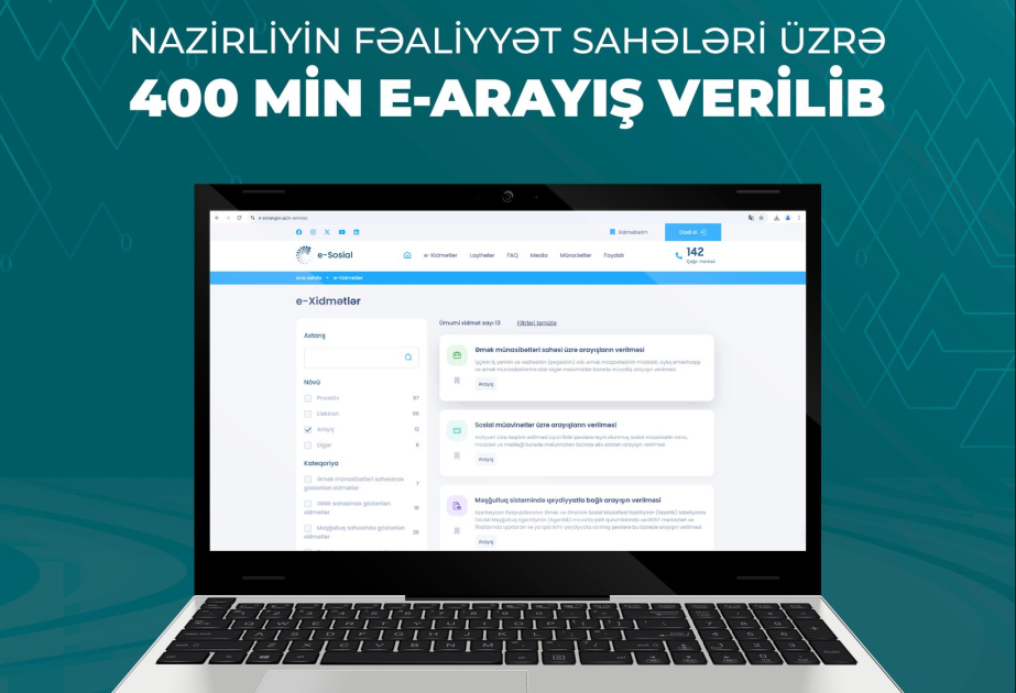Nazirlik: ötən il sosial sahə üzrə 400 min elektron arayış verilib