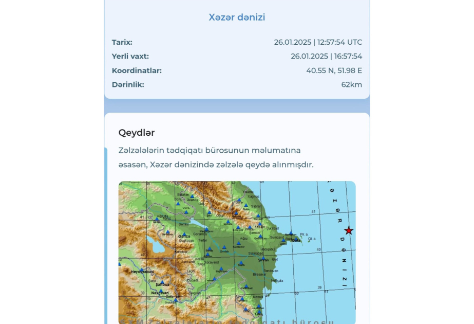Xəzər dənizində zəlzələ qeydə alınıb