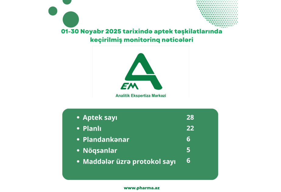Ötən ay 28 aptekdə yoxlama aparılıb