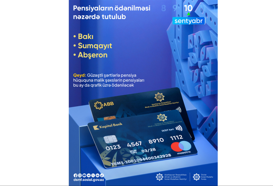 Sabah Bakı, Sumqayıt və Abşeron üzrə pensiyalar ödəniləcək