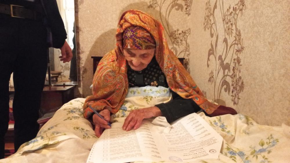 “Əvvəllər bütün seçkilərdə özüm gedib səs verirdim. Son illərdə yaşımla, səhhətimlə əlaqədar gedə bilmədiyim üçün evdə səs verirəm. Ömür vəfa etsə, bundan sonrakı seçkilərdə də iştirak edəcəyəm”, - deyə 115 yaşlı Səriyyə Cavadova bildirib.