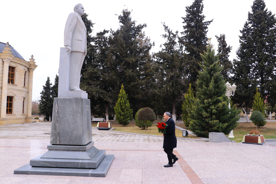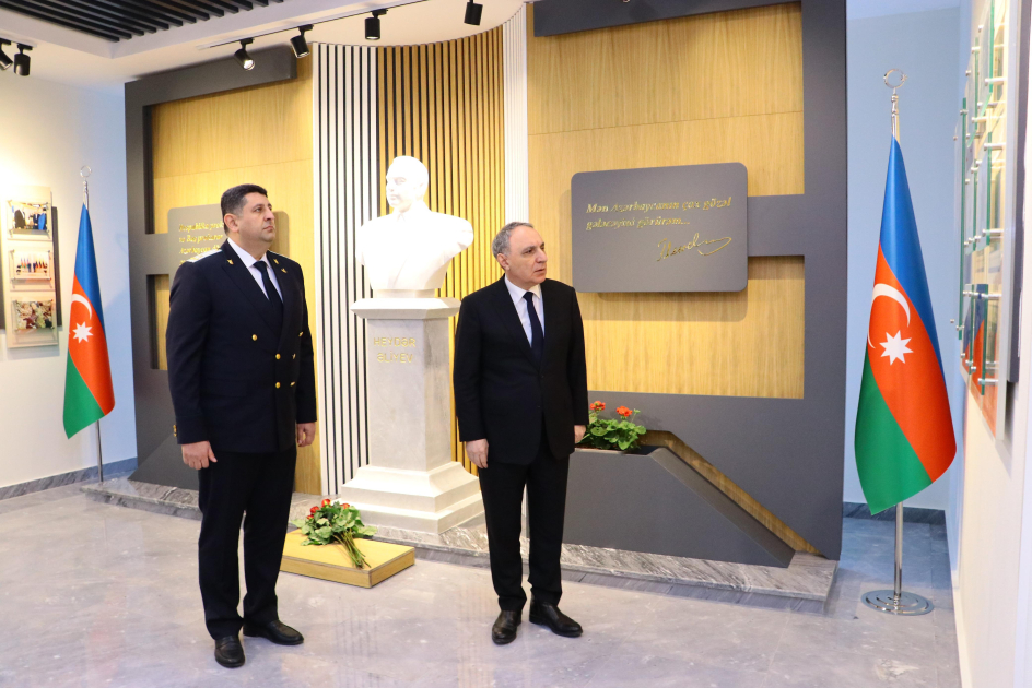 AZƏRTAC xəbər verir ki, əvvəlcə mərasim iştirakçıları yeni inzibati binanın foyesində Ulu Öndər Heydər Əliyevin büstü önünə gül dəstələri qoyaraq, dahi rəhbərin unudulmaz xatirəsinə dərin hörmət və ehtiramlarını bildiriblər.