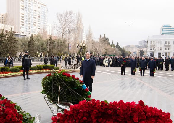 Abidənin önünə gül dəstələri düzülüb, faciə zamanı həlak olanların əziz xatirəsi dərin ehtiramla yad edilib.