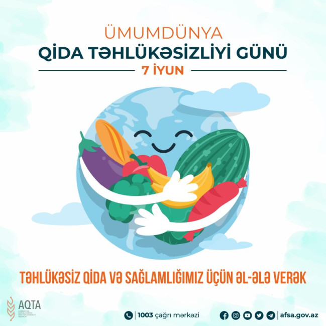 Artıq 7 ildir ki, iyunun 7-si Ümumdünya Qida Təhlükəsizliyi Günü qeyd olunur. Ümumdünya Səhiyyə Təşkilatının (ÜST) son hesabatına əsasən, hər il 600 milyon insan qida ilə ötürülə bilən 200 növ xəstəlikdən əziyyət çəkir. Bu xəstəliyə yoluxanlar arasında isə gənclər üstünlük təşkil edir. Təşkilatın məlumatına görə, qida ilə yoluxan xəstəliklər dünyada hər 10 nəfərdən 1-nə təsir edir. Ümumdünya Qida Təhlükəsizliyi Gününün builki devizi “Qida təhlükəsizliyi: Elm fəaliyyətdədir” adlanır.