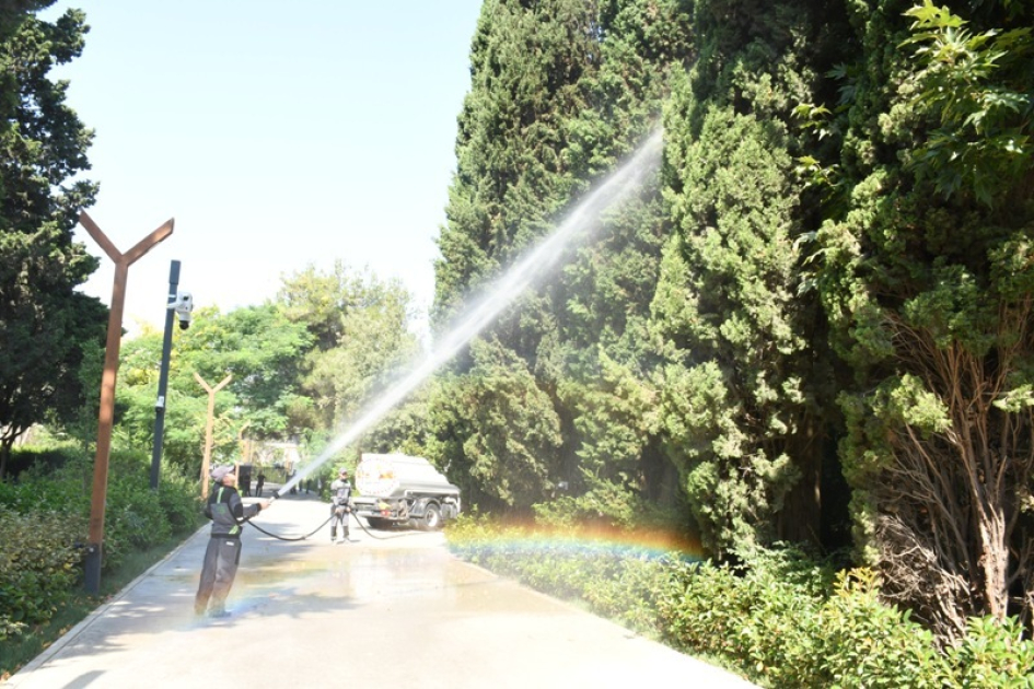 Bakı şəhər kommunal xidmətləri tərəfindən paytaxtda növbəti dəfə həyata keçirilən genişmiqyaslı təmizlik işləri çərçivəsində küçə və yol kənarlarına, həyət və məhəllələrə yayılan tozun təmizlənməsi, mövcud yaşıllıqlara qulluq göstərilməsi həyata keçirilib.