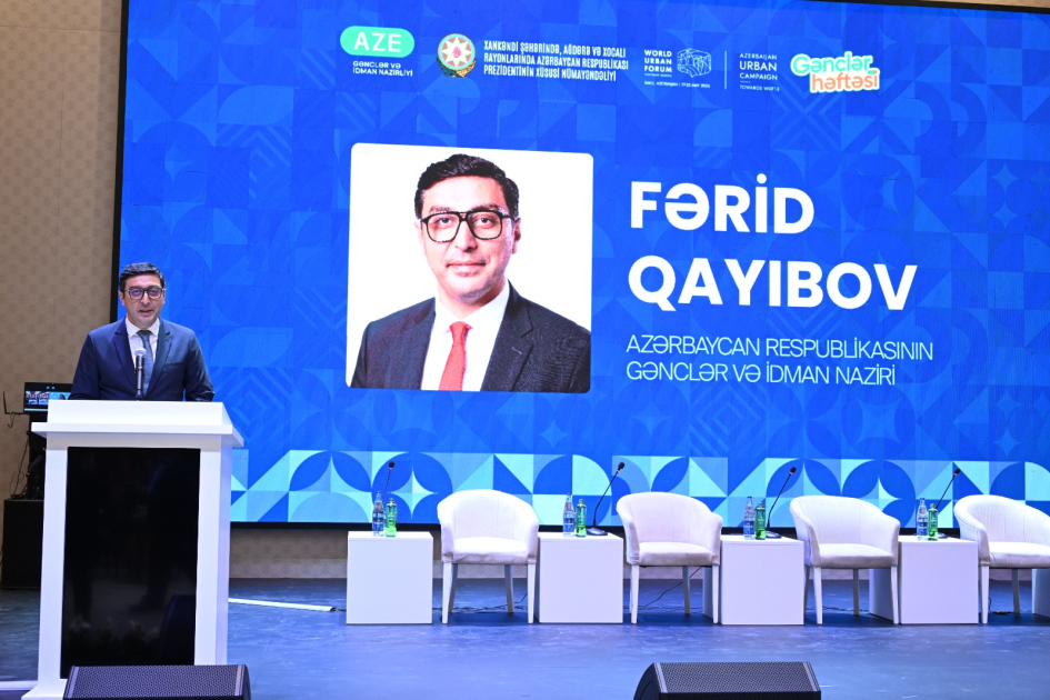 Daha sonra çıxış edən gənclər və idman naziri Fərid Qayıbov isə bu il Azərbaycan Gənclərinin Forumunun 30 illiyinin qeyd olunduğundan və forumun azad olunmuş Xankəndi şəhərində keçirilməsinin xüsusi əhəmiyyət daşıdığından danışıb. Nazir azad edilmiş şəhər və rayonlarda beynəlxalq tədbirlərin təşkil olunduğunu, Qarabağ bölgəsinin müasir şəhərsalma prinsipləri əsasında sürətlə yenidən qurulduğunu da xüsusi vurğulayıb. O, həmçinin qeyd edib ki, bu il Goranboy şəhəri “Gənclər paytaxtı” elan olunub və bu münasibətlə silsilə tədbirlər keçiriləcək.