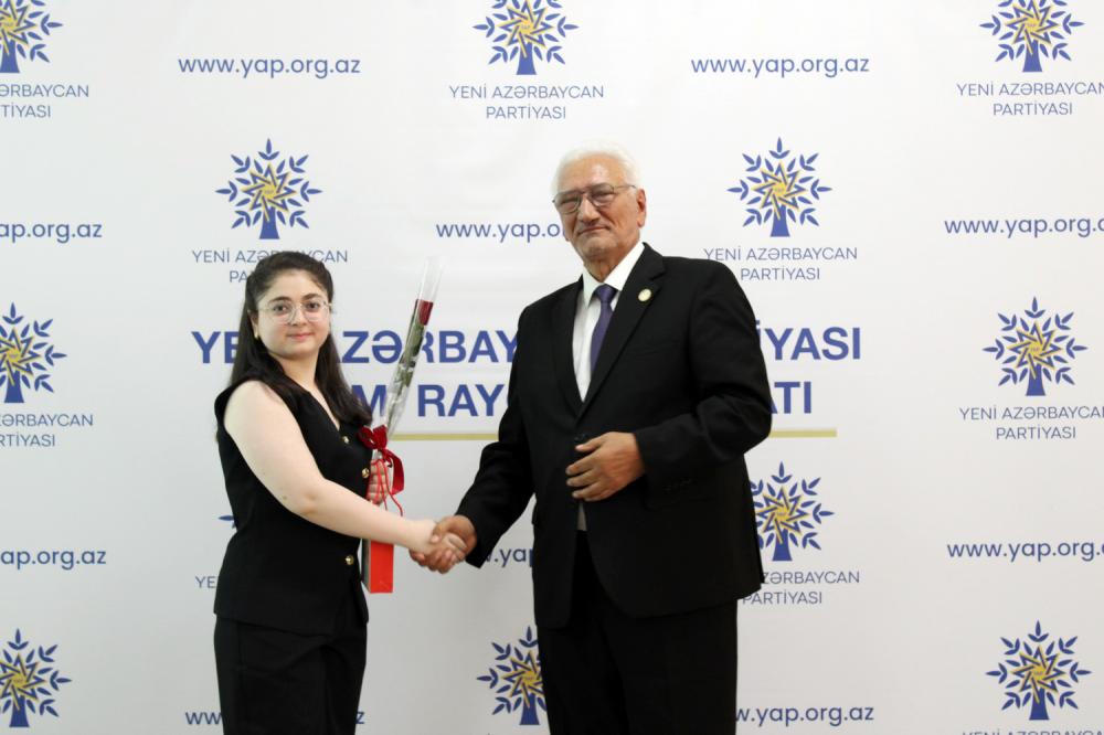 Sonra yüksək bal toplayan tələbələrə və onların təmsil olunduğu məktəblərin rəhbərlərinə hədiyyələr təqdim edilib, yubileyi olan ərazi partiya təşkilatı fəalları təltif olunublar.