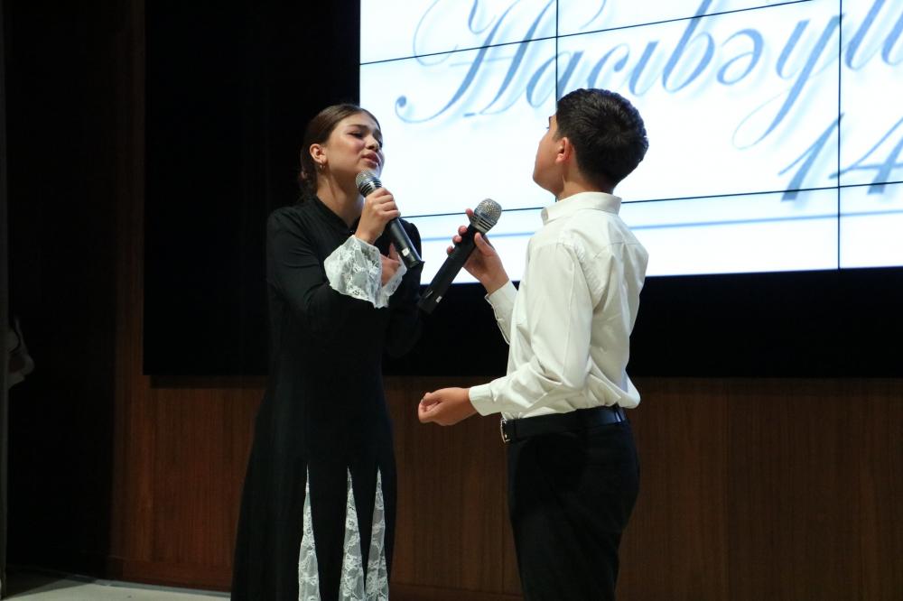 Tədbirdə "Leyli və Məcnun" operasından "Şəbi-hicran" xoru, müəllimlərdən ibarət xor kollektivi tərəfindən "Arşın mal alan", "O olmasın, bu olsun" operattalarından musiqilər, məktəbin xalq çalğı orkestri tərəfindən "Arşın mal alan "operettasından müqəddimə səsləndirilib, həmçinin "Arşın mal alan " operettasından səhnəciklər nümayiş olunub.