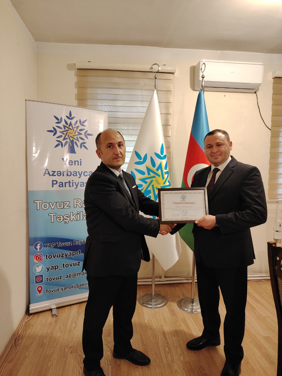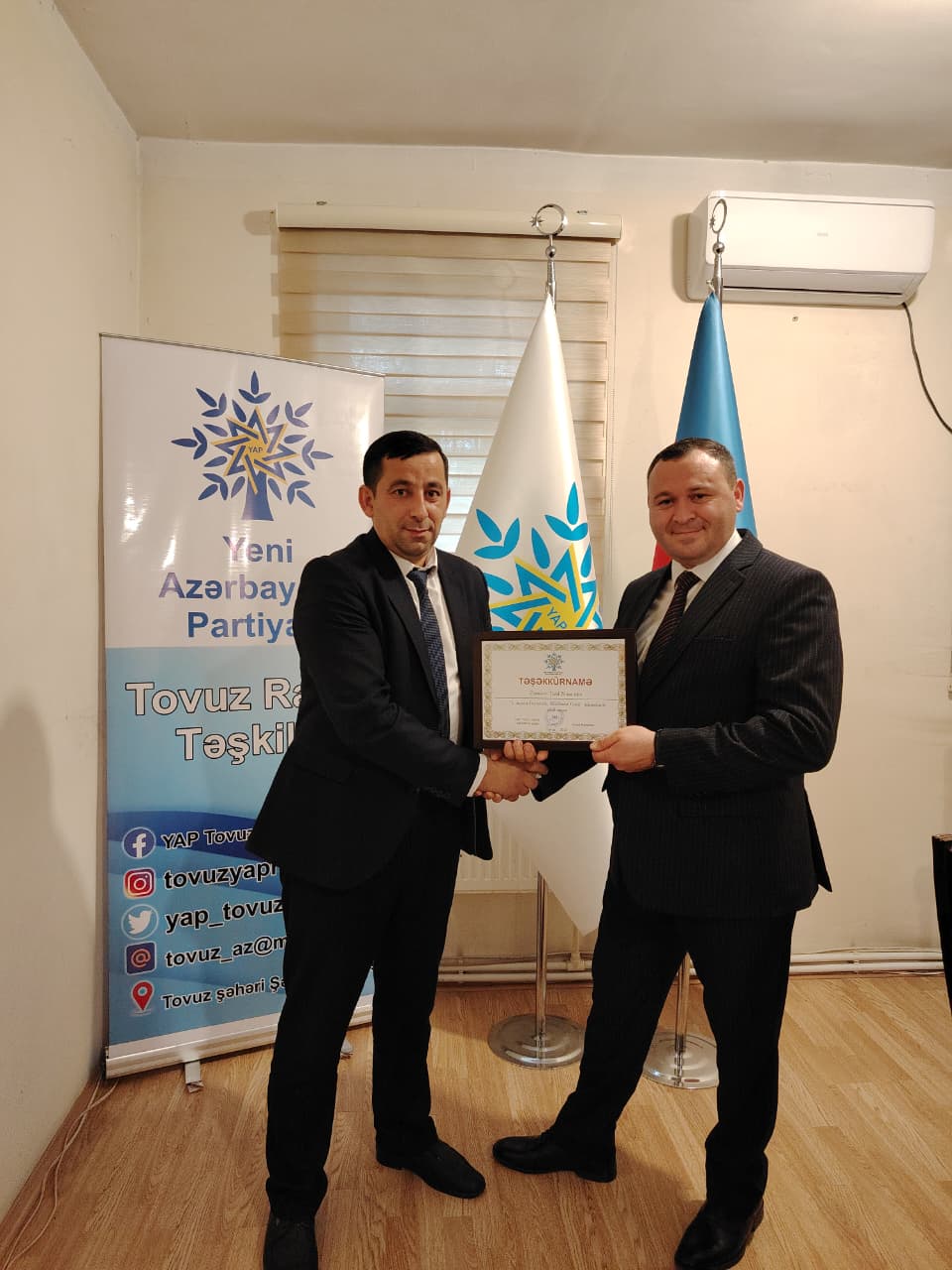 Tədbirdə YAP Tovuz rayon təşkilatının sədri Nihad Pənahov, Qazax–Tovuz Regional Təhsil İdarəsinin Tovuz Təhsil Sektorunun müdiri Aysel Quliyeva və partiya fəalları iştirak ediblər.