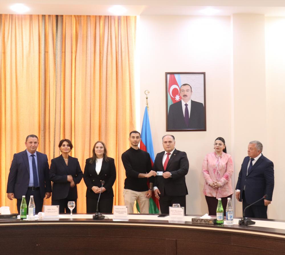 Dəyirmi masanın sonunda YAP-a yeni üzv qəbul edilən gənclərə partiya vəsiqələri təqdim olunub, Ulu öndər Heydər Əliyevin büstü önündə xatirə şəkli çəkdirilib.