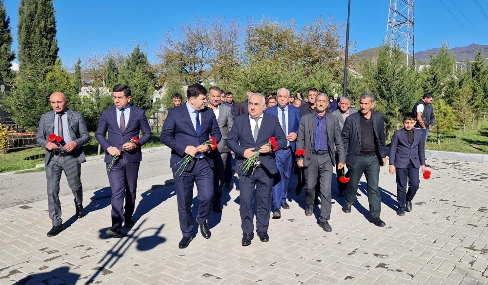 Tədbir iştirakçıları torpaqlarımızın işğaldan azad edilməsi uğrunda gedən döyüşlərdə qəhrəmancasına vuruşaraq şəhadətə yüksələn Qənimətov Ətraf Oktay oğlunun və digər şəhidlərin məzarlarını ziyarət edərək, onların əziz xatirəsini ehtiramla yad ediblər.