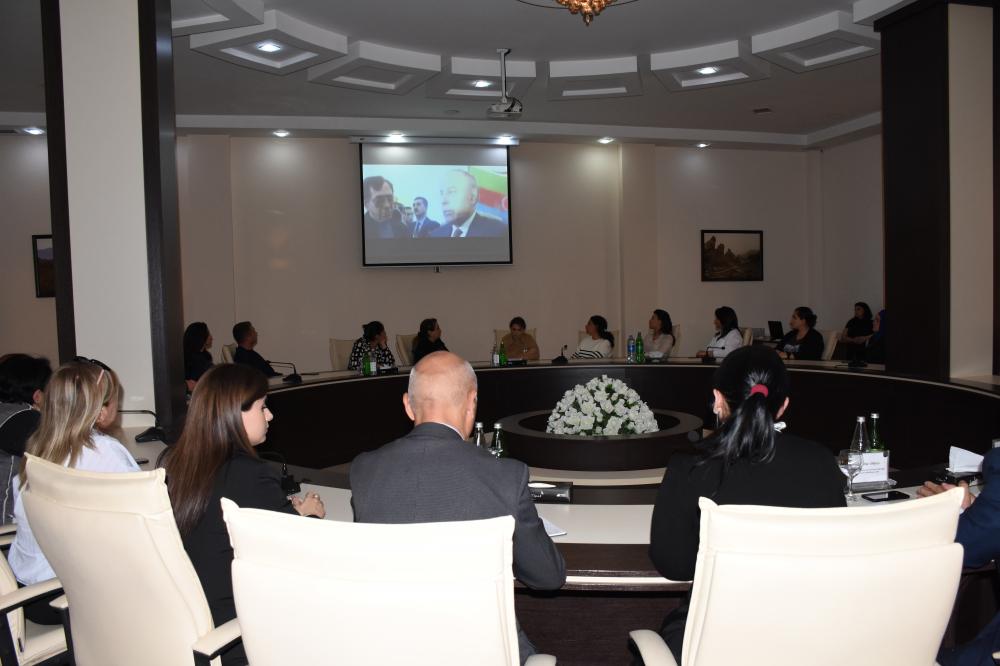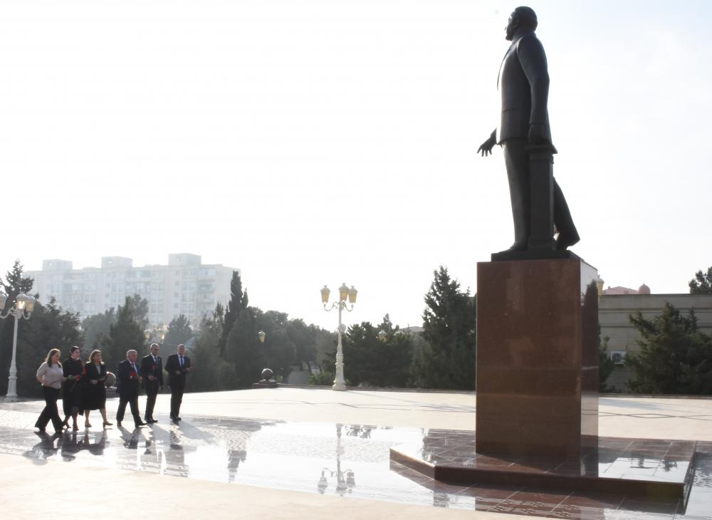 Tədbir iştirakçıları əvvəlcə Ulu öndər Heydər Əliyevin Mərkəzin qarşısında yerləşən abidəsi önünə gül dəsətələri düzərək əziz xatirəsinə dərin ehtiramlarını bildiriblər.