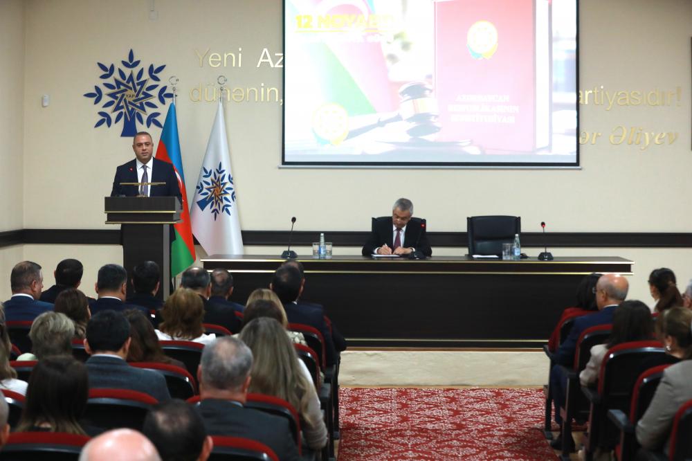 Çıxış edən ərazi partiya təşkilatının sədrləri – Mehriban Hacıyeva, Qənirə Əmircanova çıxışlarında qeyd ediblər ki, Azərbaycan Respublikasının Konstitusiyası milli dövlətçilik ideyasının və suveren iradənin bərqərar olmasının təzaharüdür. Konstitusiya xalqın azadlıq ruhunu, dövlətin müstəqilliyini və vətəndaşın hüquqlarını qoruyan müqəddəs sənəddir.