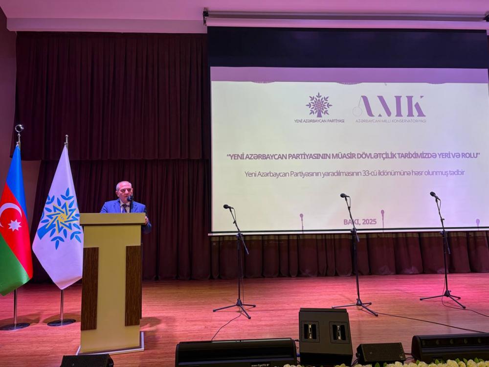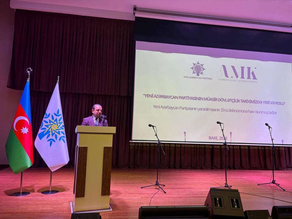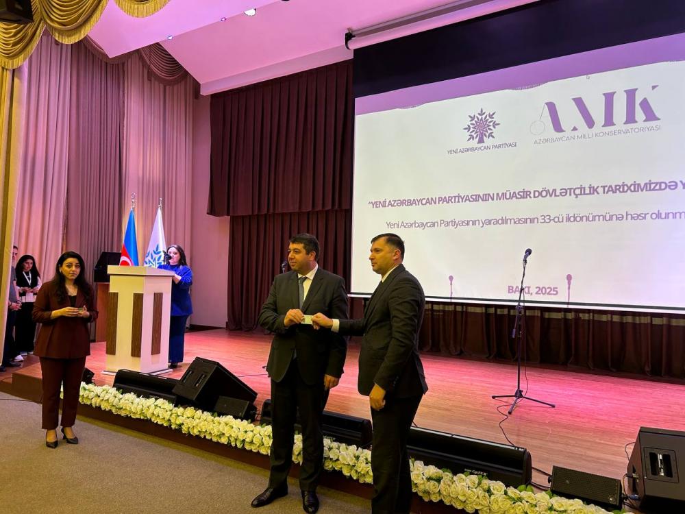 “Konstitusiya və Suverenlik İli” çərçivəsində Yeni Azərbaycan Partiyası (YAP) və Azərbaycan Milli Konservatoriyasının birgə təşkilatçılığı ilə Yeni Azərbaycan Partiyasının yaradılmasının 33-cü ildönümünə həsr olunmuş “Yeni Azərbaycan Partiyasının müasir dövlətçilik tariximizdə yeri və rolu” adlı tədbir keçirilib.