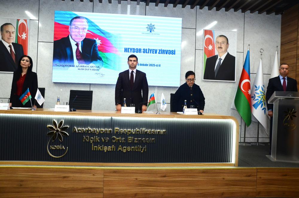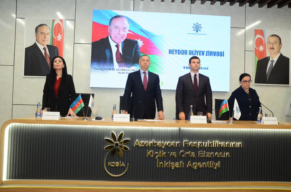Çıxış edən Azərbaycan Respublikası Kiçik və Orta Biznesin İnkişafı Agentliyinin (KOBİA) İdarə Heyətinin sədri Orxan Məmmədov vurğulayıb ki, Ulu Öndər Heydər Əliyev xalqımızın tarixində silinməz iz qoymuş, müasir Azərbaycan dövlətinin memarı və qurucusu, dünya siyasətində öz müdrikliyi, uzaqgörənliyi və qətiyyəti ilə seçilən dahi şəxsiyyətdir. O.Məmmədov diqqətə çatdırıb ki, Ulu Öndər Heydər Əliyevin ən böyük tarixi xidmətlərindən biri də Azərbaycan iqtisadiyyatının yeni fəlsəfi əsaslarla qurmasıdır: “Ümummilli Lider Heydər Əliyevin iqtisadi strategiyasında sahibkar və sahibkarlıq fəaliyyəti xüsusi rol oynayırdı. Ulu Öndər sahibkarlığı milli iqtisadi gücün əsas dayağı kimi qiymətləndirirdi. Ümummilli Lider Heydər Əliyevin rəhbərliyi ilə ölkəmizdə ilk dəfə sahibkarlığın hüquqi bazası formalaşdı, özəl mülkiyyətin toxunulmazlığı, azad rəqabət, əlverişli investisiya mühiti, KOB-ların dəstəklənməsi kimi prinsiplər dövlət siyasətinin ayrılmaz hissəsinə çevrildi”.