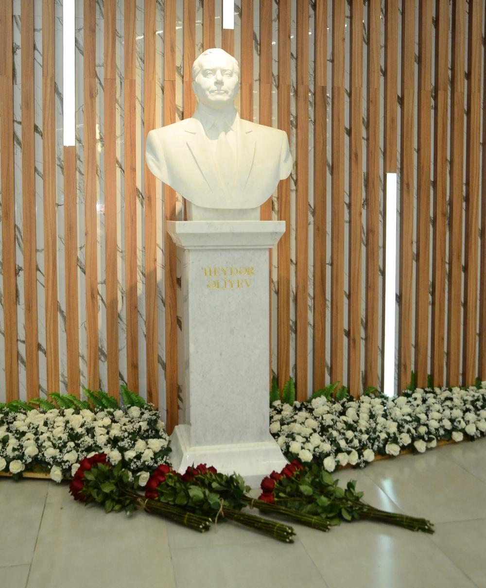 Əvvəlcə Ulu Öndər Heydər Əliyevin büstü önünə gül dəstələri düzülüb.