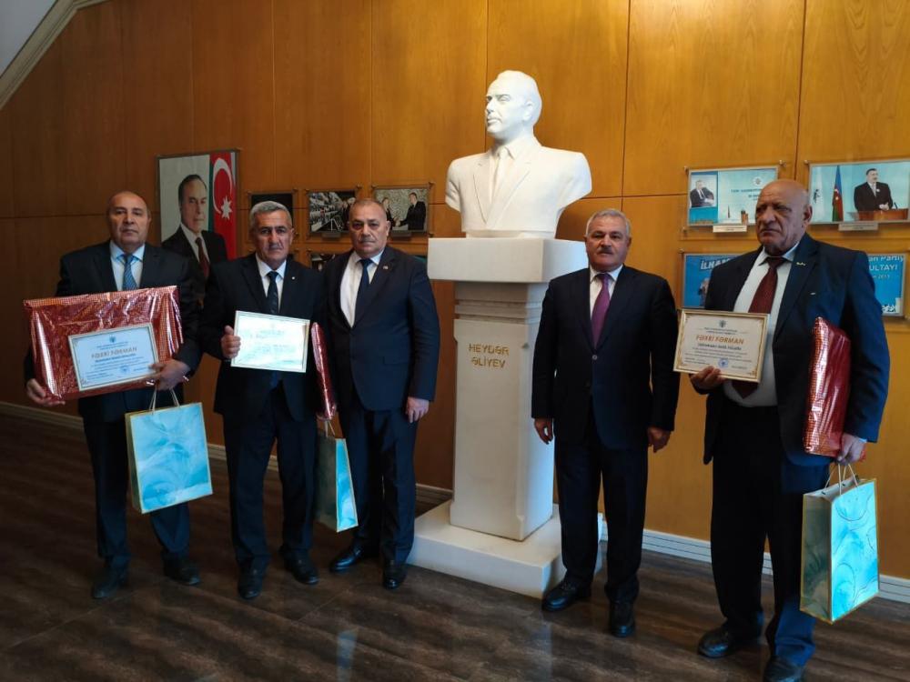 Görüşün sonunda partiya veteranlarına YAP Tərtər rayon təşkilatı tərəfindən Fəxri Fərman və qiymətli hədiyyələr təqdim edilmişdir.