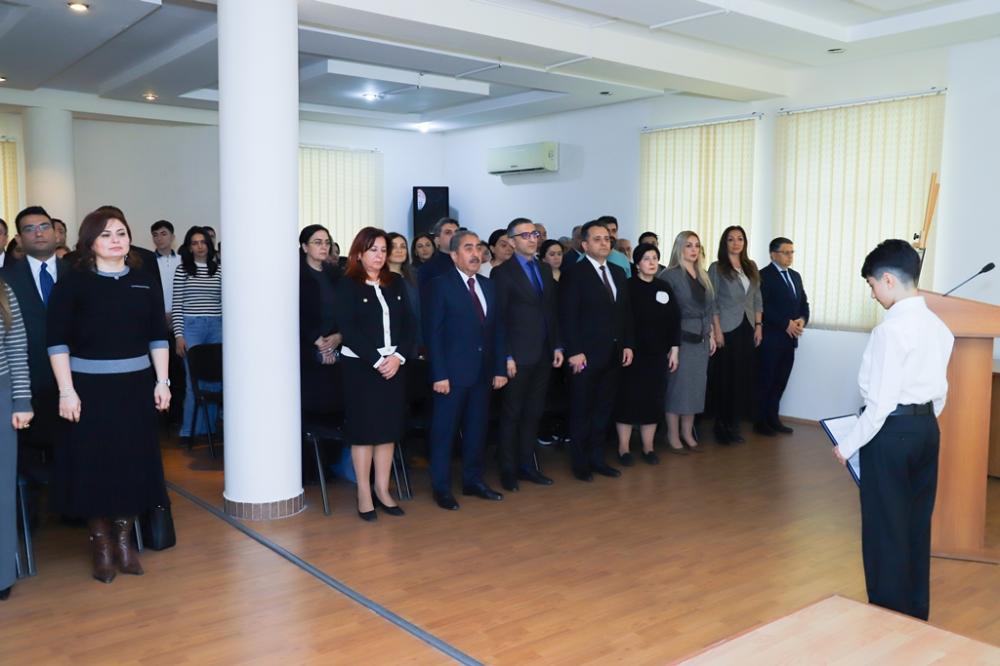 Əvvəlcə tədbir iştirakçılarının iştirakı ilə Azərbaycan Respublikasının Dövlət Himni səsləndirilib, ardınca Ümummilli lider Heydər Əliyevin və Vətən uğrunda şəhid olmuş qəhrəmanların əziz xatirəsi bir dəqiqəlik sükutla yad edilib.