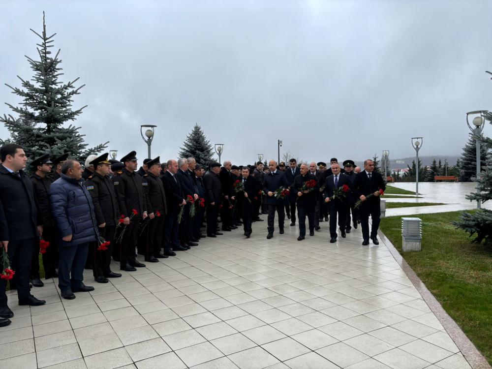Əvvəlcə Ulu Öndər Heydər Əliyevin büstü önünə gül dəstələri düzülüb.