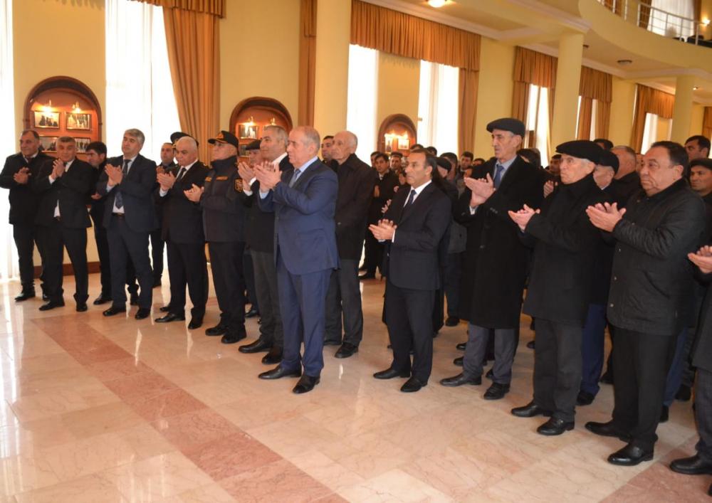 Tədbirdən əvvəl rayonun hüquq-mühafizə orqanlarının,idarə,müəssisə və təşkilatların rəhbərləri,rayon əhalisi,şəhid ailələri,rayon ağsaqqalları və YAP fəalları əvvəlcə Ulu Öndərin abidəsini ziyarət etmiş,önünə tər güllər düzərək əziz xatirəsini böyük ehtiramla yad etmişlər.