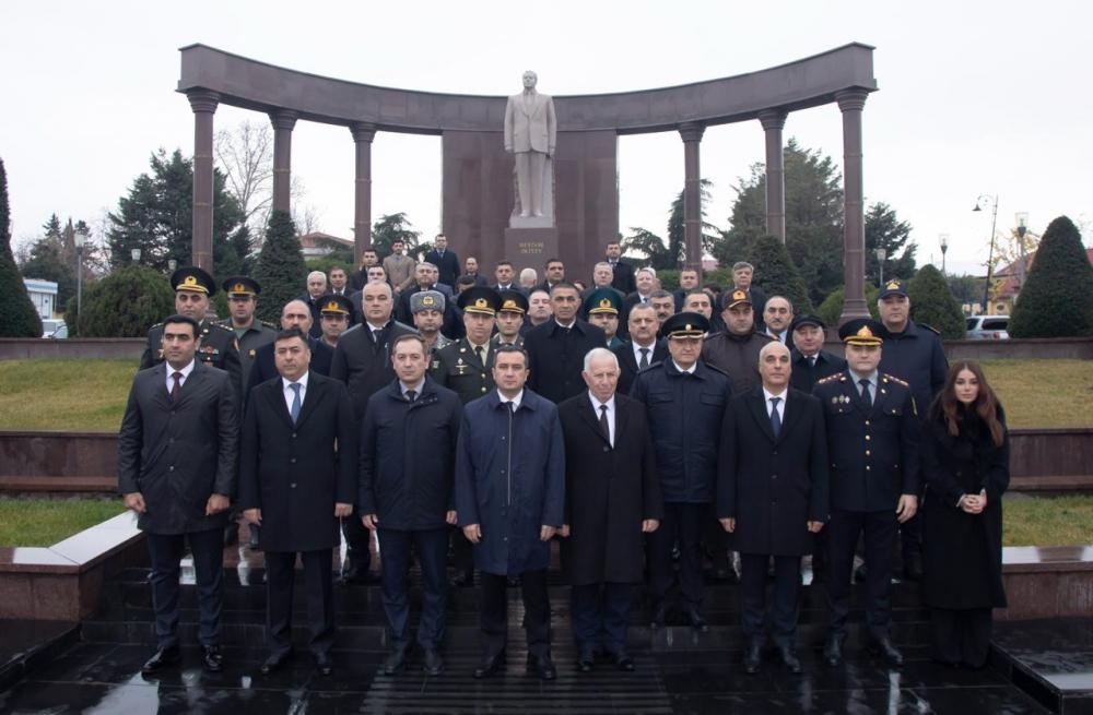 Şəmkir Rayon İcra Hakimiyyətinin başçısı Rəşad Tağıyev, hüquq-mühafizə orqanlarının, idarə və təşkilatların rəhbərləri, rayon ictimaiyyəti dahi şəxsiyyət Heydər Əliyevin Şəmkir şəhərinin mərkəzində ucaldılmış abidəsi önünə gül dəstələri düzüb, əziz xatirəsini dərin ehtiramla yad ediblər.
