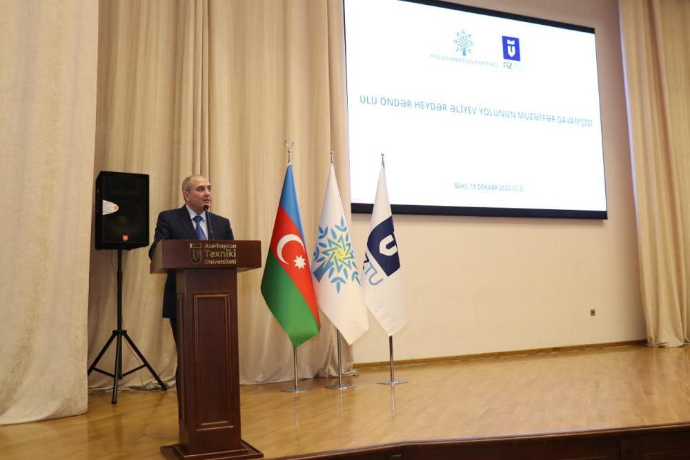 “Konstitusiya və Suverenlik İli” çərçivəsində Yeni Azərbaycan Partiyası (YAP) və Azərbaycan Texniki Universitetinin birgə təşkilatçılığı ilə “Ulu Öndər Heydər Əliyev yolunun Müzəffər davamçısı” adlı tədbir keçirilib.