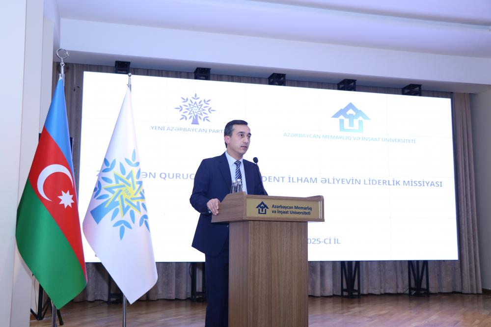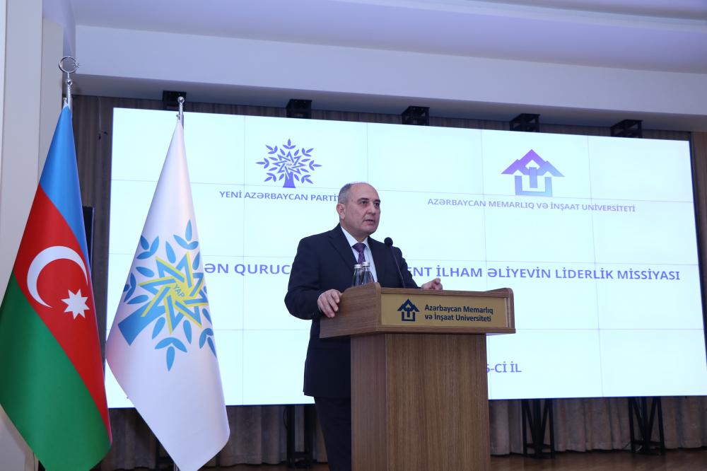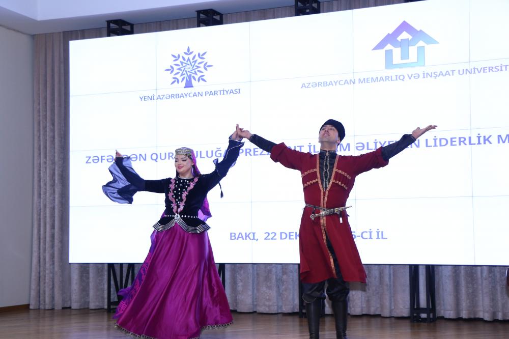 Dekabrın 22-də “Konstitusiya və Suverenlik İli” çərçivəsində Yeni Azərbaycan Partiyası (YAP) və Azərbaycan Memarlıq və İnşaat Universitetinin birgə təşkilatçılığı ilə “Zəfərdən quruculuğa: Prezident İlham Əliyevin liderlik missiyası” adlı tədbir keçirilib.
