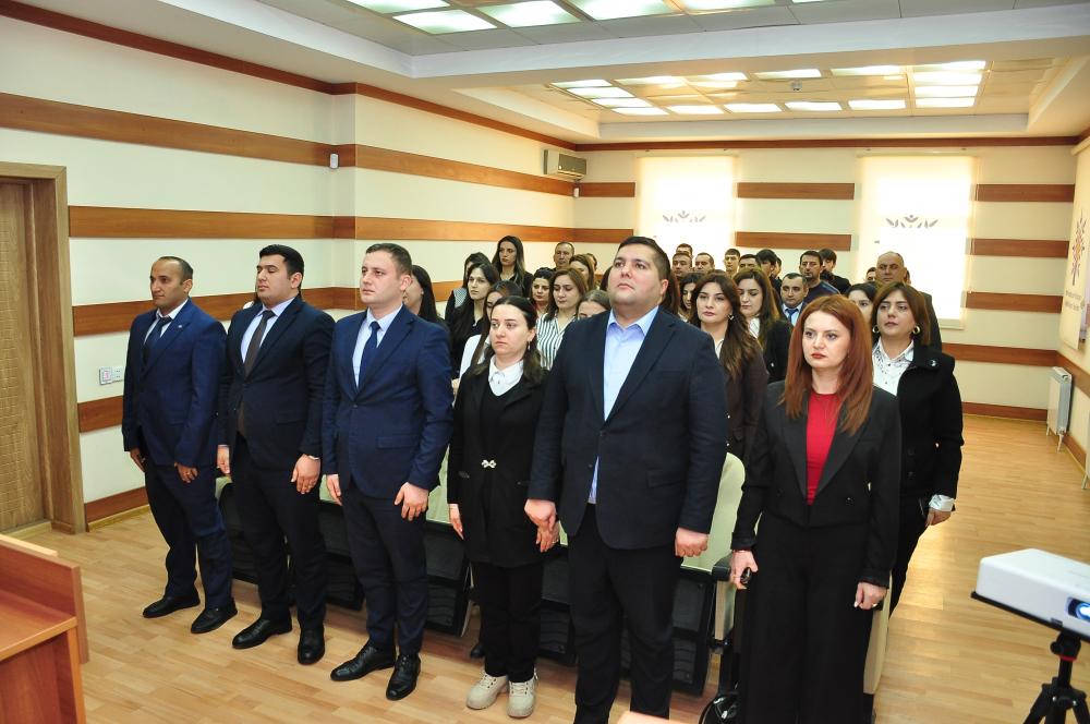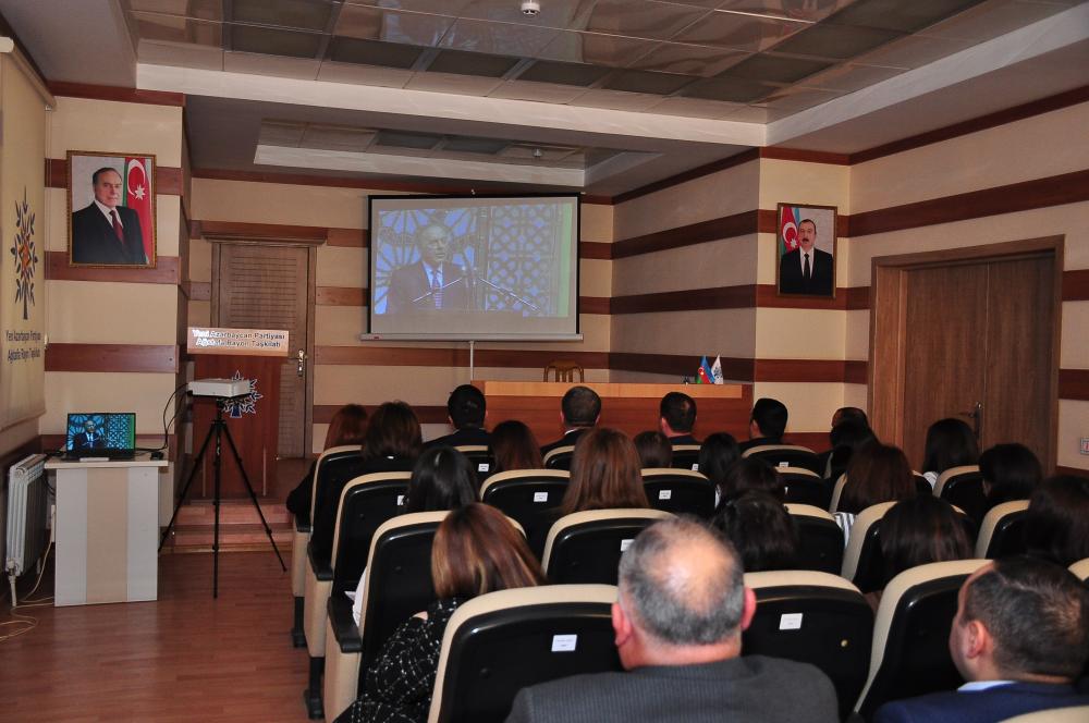 Tədbirə başlamazdan öncə Azərbaycan Respublikasının Dövlət Himni səsləndirilib. Yeni Azərbaycan Partiyasının, müasir, müstəqil Azərbaycanın qurucusu Ulu Öndər Heydər Əliyevin və vətənimizin ərazi bütövlüyü uğrunda gedən döyüşlərdə canlarından keçmiş şəhidlərimizin əziz xatirələri bir dəqiqəlik sükutla yad edilib.