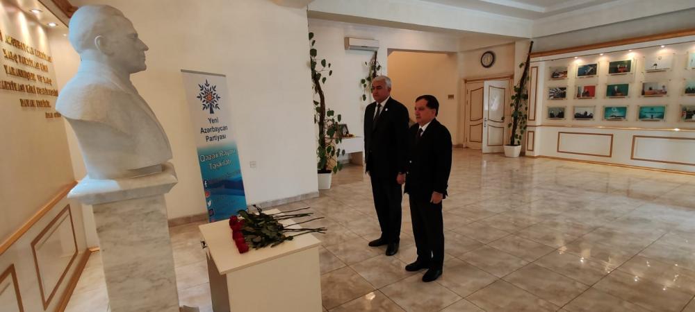 Əvvəlcə Ümummilli Lider Heydər Əliyevin büstü ziyarət edilib, önünə tər güllər düzülüb.