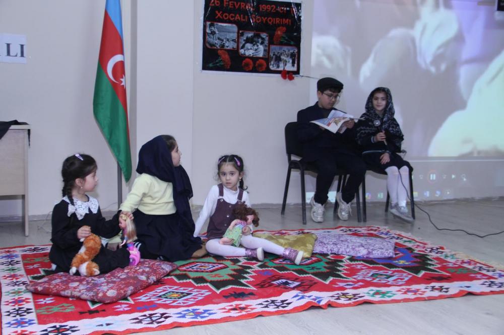 Tədbirdə şagirdlərin ifasında səsləndirilən vətənpərvərlik mahnıları, Xocalıya həsr olunmuş şeirlər kövrək, lakin ümid dolu misralarla faciənin ağrısını, şəhidlərin əziz xatirəsini və xalqımızın sınmaz iradəsini ifadə edib.