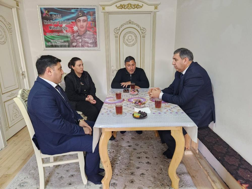 YAP Kəlbəcər rayon təşkilatının sədri Gəncə şəhərinin Gülüstan qəsəbəsində, antiterror əməliyyatları zamanı şəhid olmuş Mehdiyev Şəhriyar Mübariz oğlunun, Mingəçevir şəhərində antiterror əməliyyatlarında şəhid olmuş Tağızadə Cahangir Qurban oğlunun, Samux rayonu Karayeri qəsəbəsində yaşayan Vətən çüharibəsi şəhidi Bəylərov Seymur Səlyəddin oğlunun və Göygol rayon Bənövşəli kəndində Vətən müharibəsi şəhidi Bayramov Samir Elxan oğlunun ailələrini ziyarət edib.