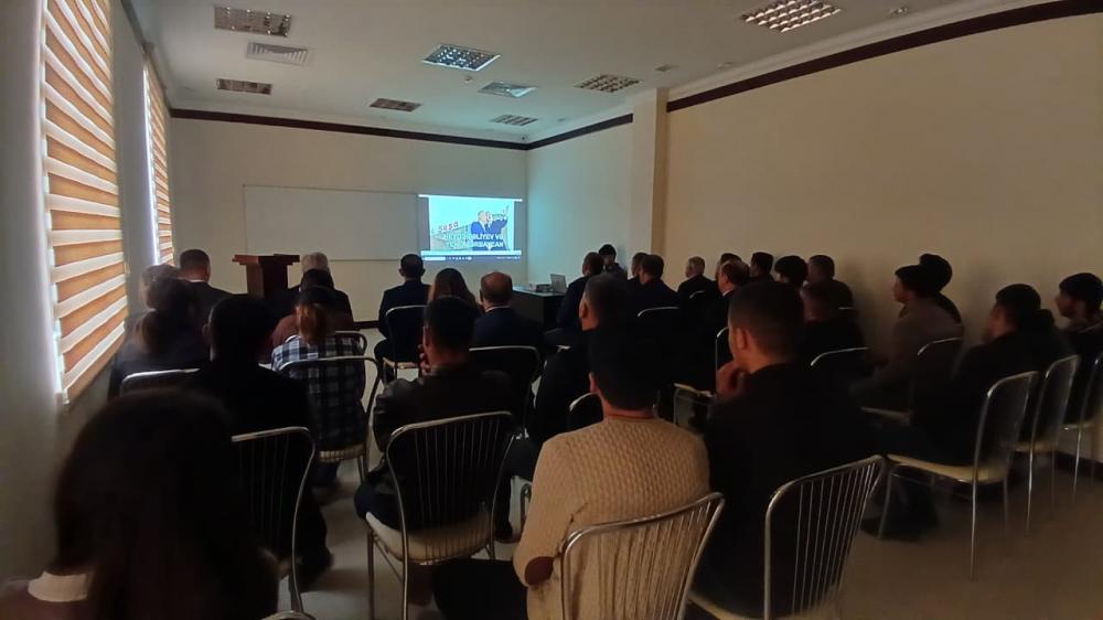 Ulu Öndər Heydər Əliyevin həyat və yaradıcılığına həsr olunmuş “ Heydər Əliyev və Yeni Azərbaycan” adlı filmə baxılmışdır.