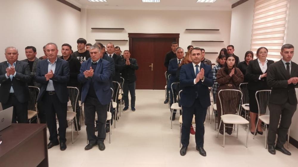 Sonra rayon təşkilatının sədri Qasım Qasımov mövzu ilə bağlı geniş nitq söyləmişdir.