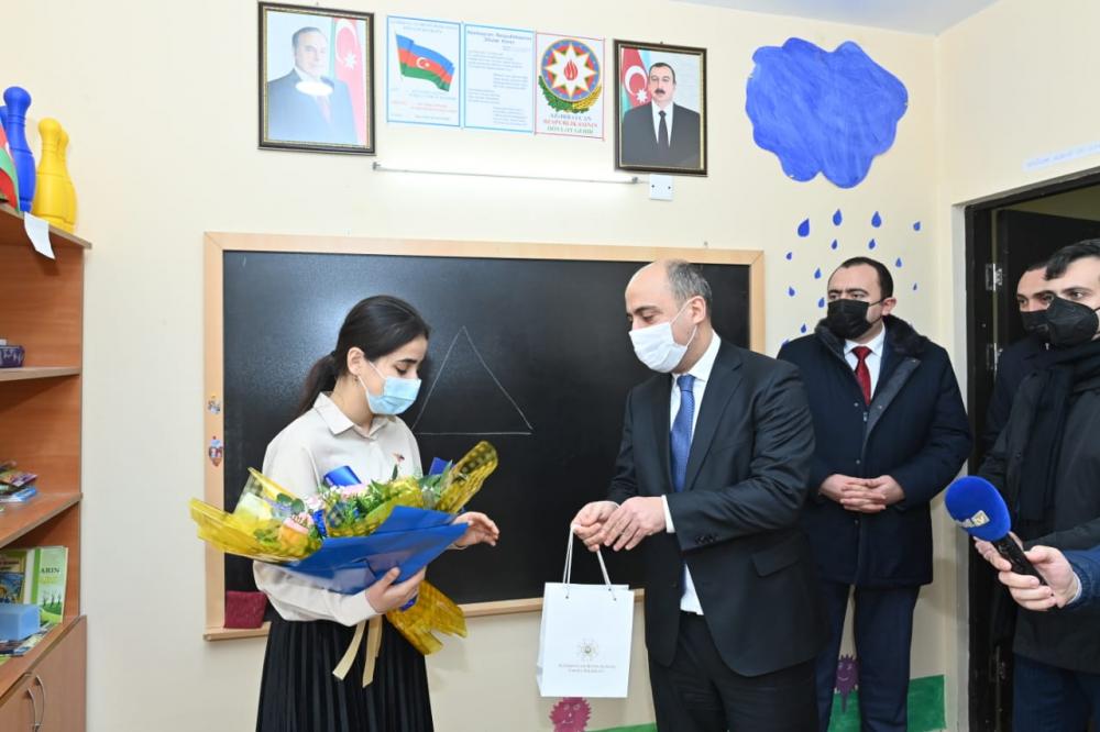 Təhsil naziri Lənkəranın ucqar Jidi dağ kənd məktəbinin müəllimi ilə görüşüb