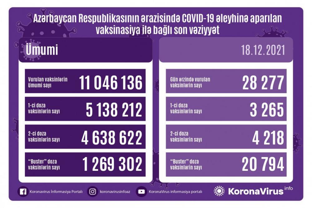 Azərbaycanda koronavirus əleyhinə vurulan vaksinlərin sayı 11 milyonu ötüb