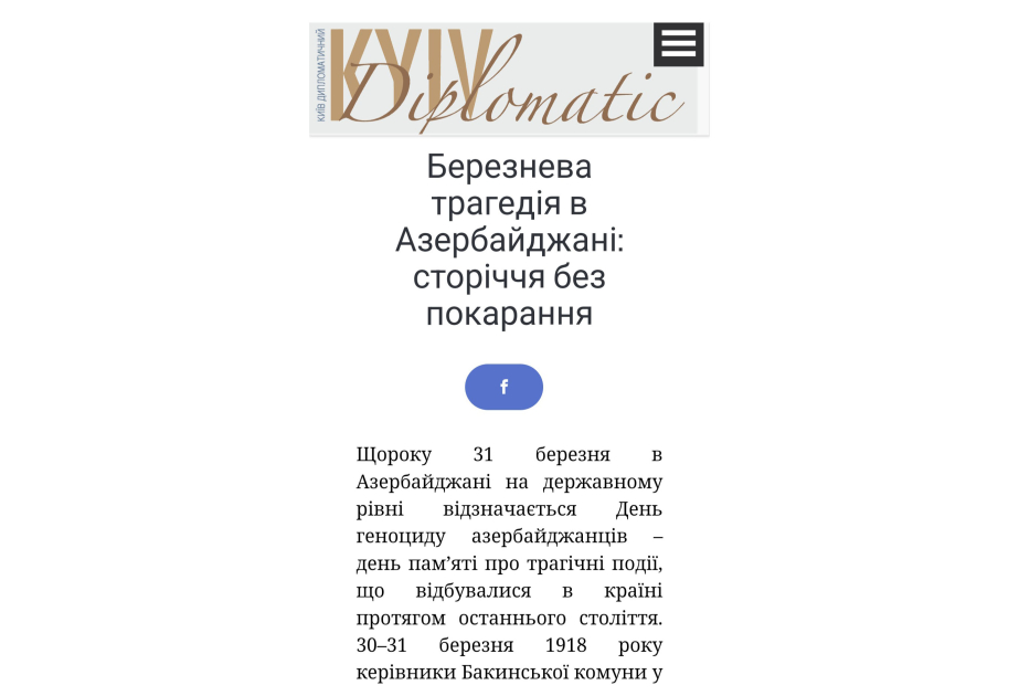 Ukrayna nəşrində Azərbaycanlıların Soyqırımı Gününə dair məqalə dərc edilib